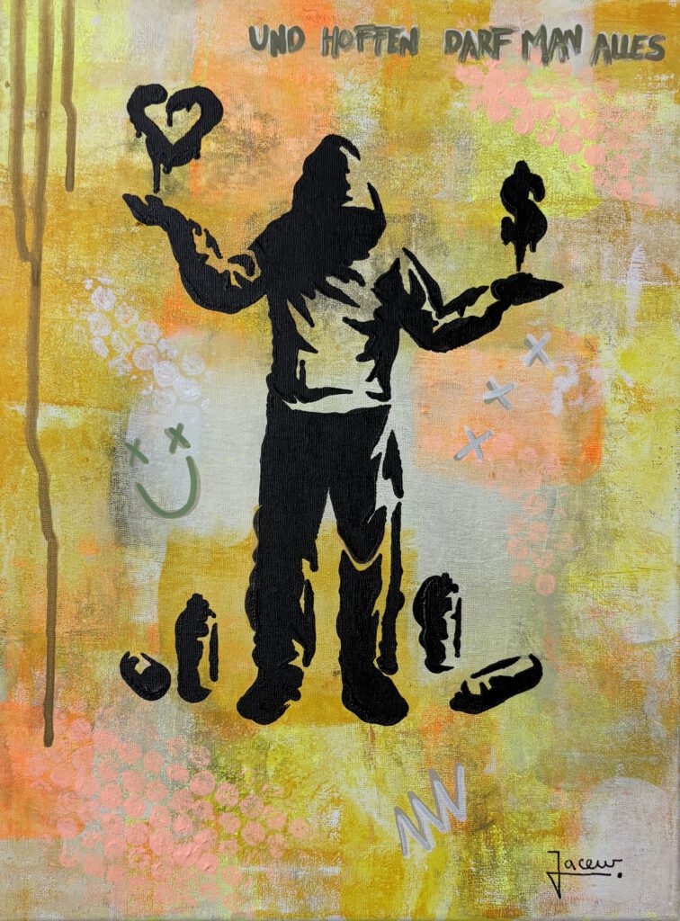 Unter dem Label Jaceur mache ich seit 2007 abstrakte Leinwandkunst und verkaufe meine Kunstwerke weltweit. Gerne teile ich in meinen Workshops (hier buchen) und bei privaten oder geschäftlichen Events (hier anmelden) meine Erfahrung und mein Wissen mit euch.