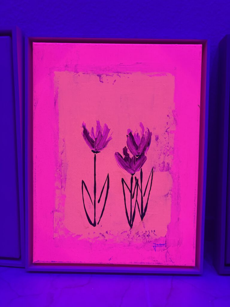 Tauche ein in eine Welt voller leuchtender Farben und faszinierender Effekte! Das Jaceur Kreativstudio ist mit einer umfassenden Schwarzlichtanlage ausgestattet die den Kreativraum in eine magische Kunstlandschaft verwandelt, in der jede Linie, jede Form und jede Farbnuance im Dunkeln zum Leben erwacht.